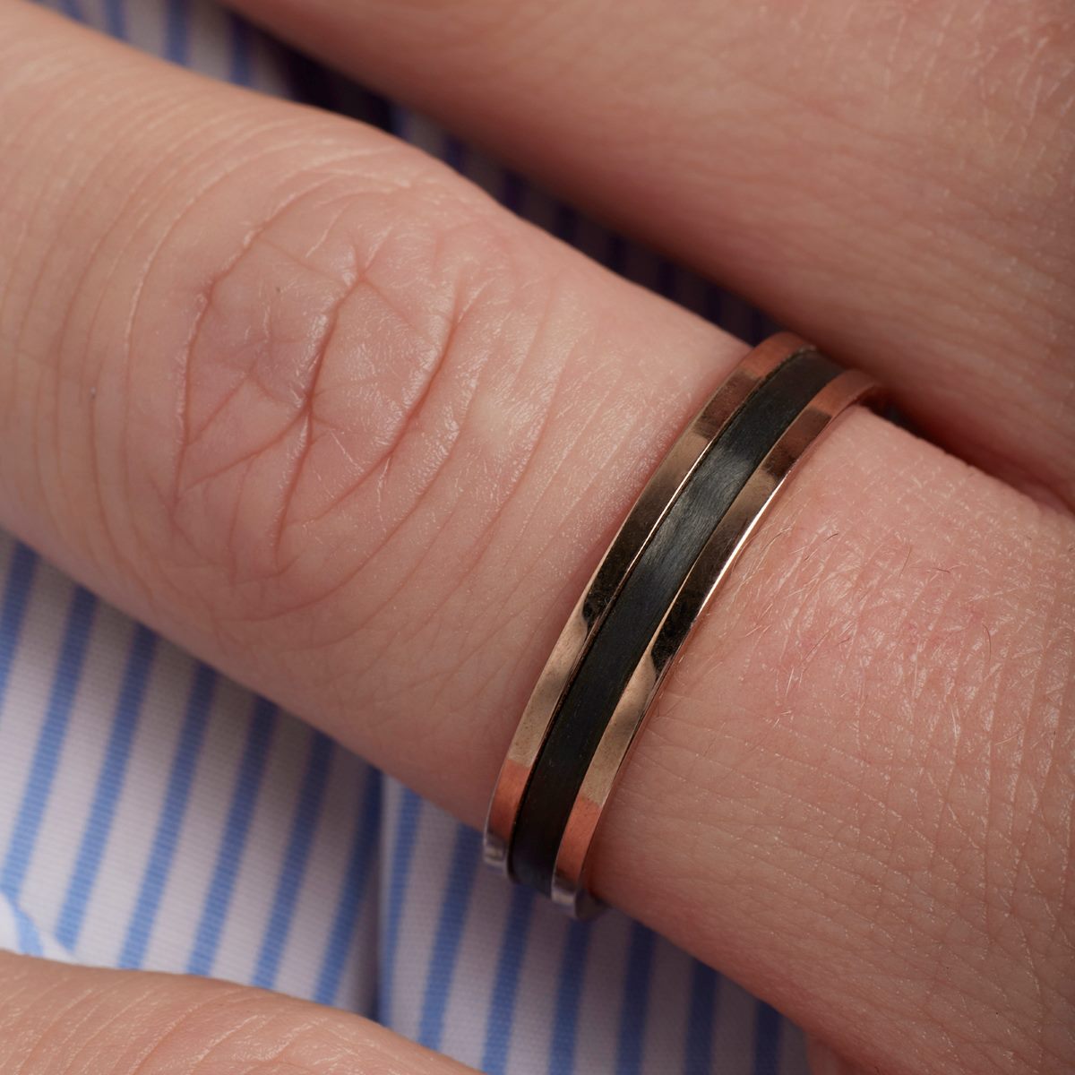 Ruban Fil Carbone au Centre or rose 750 et carbone - 2129044 - Fabrication française
