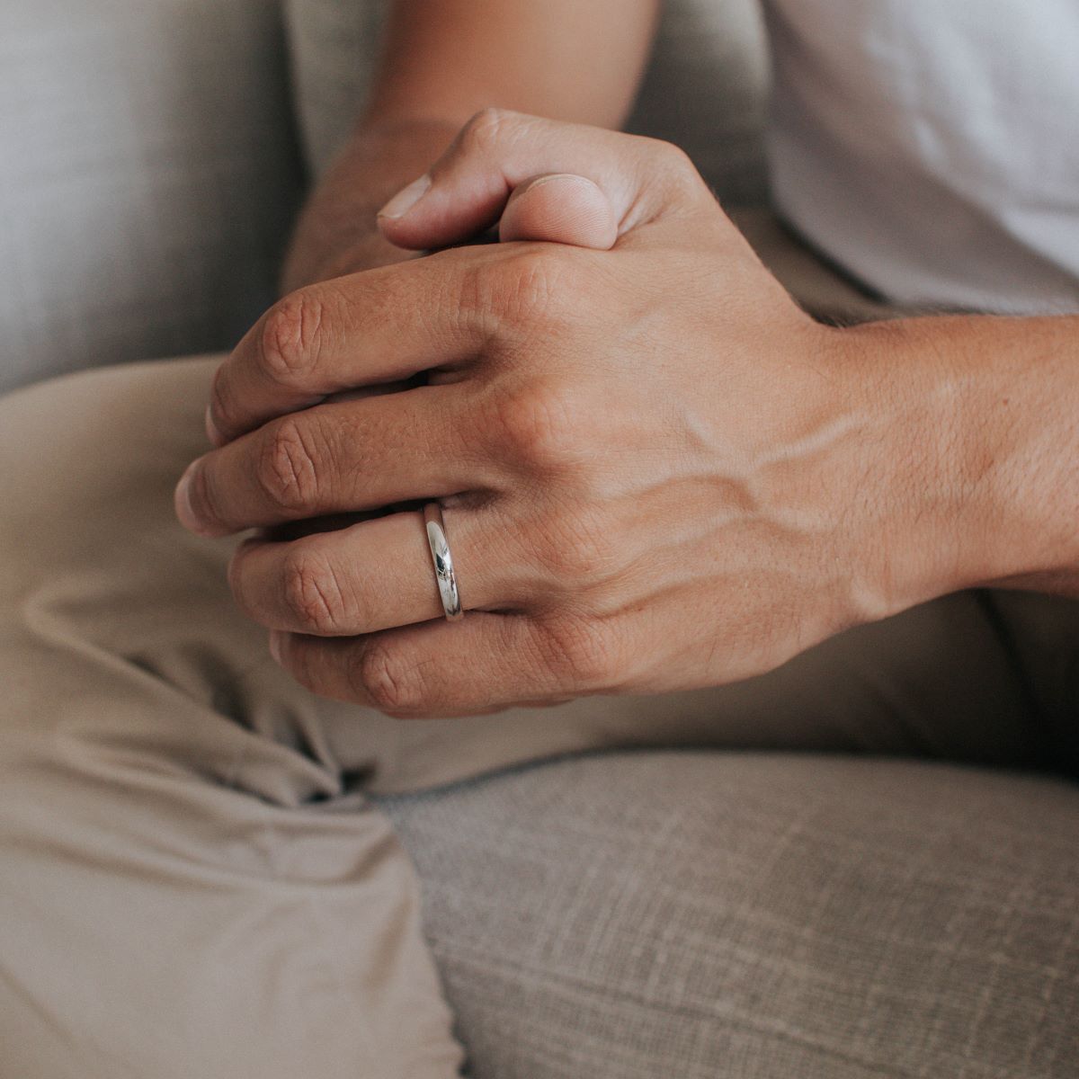 Très belle alliance de mariage classique en or blanc de forme demi bombée. Très agréable au doigt elle est le modèle d'alliance pour homme le plus vendu.