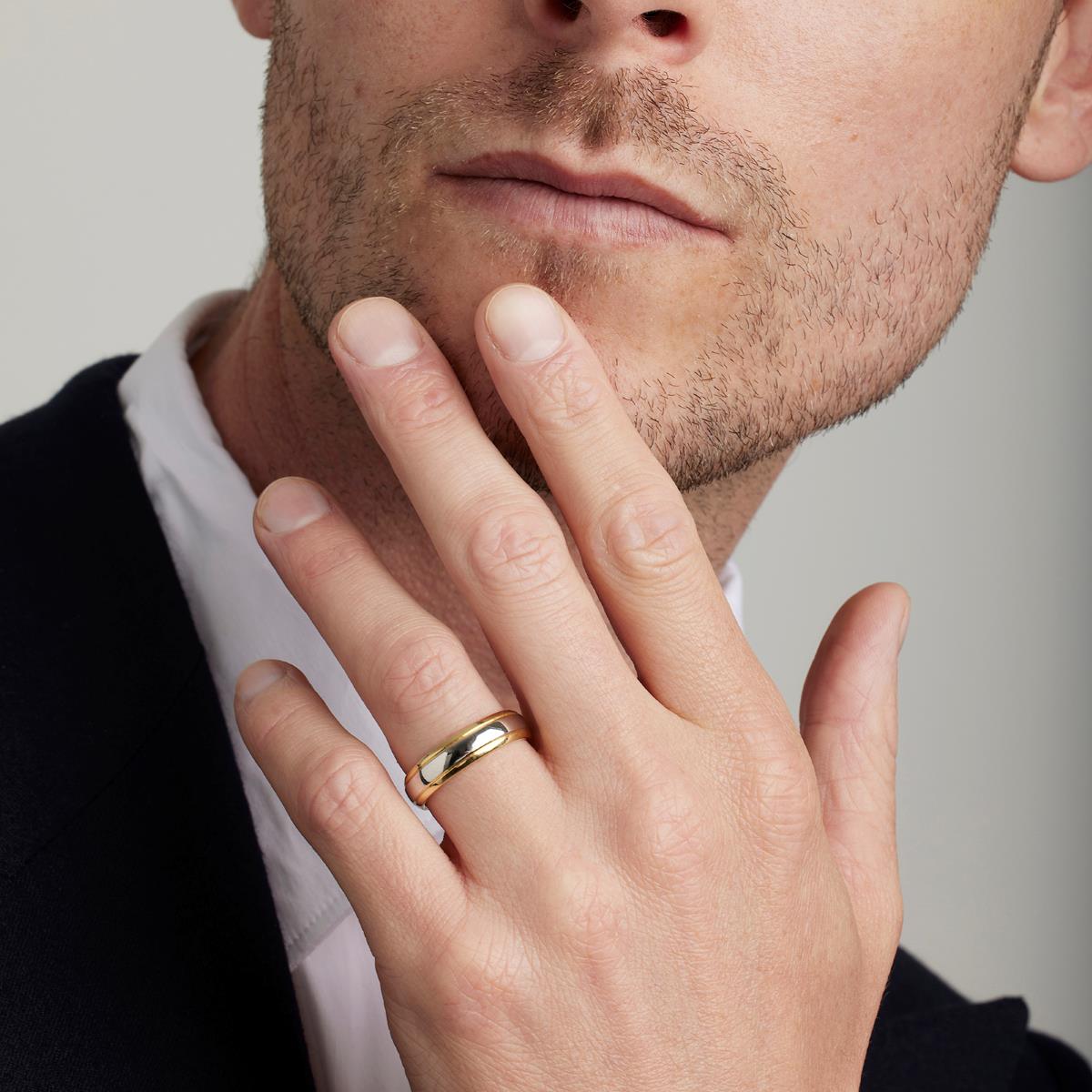 alliance de mariage, bijou de mariage bicolore, bague pour homme ou femme en platine demi bombé sur une base en or jaune