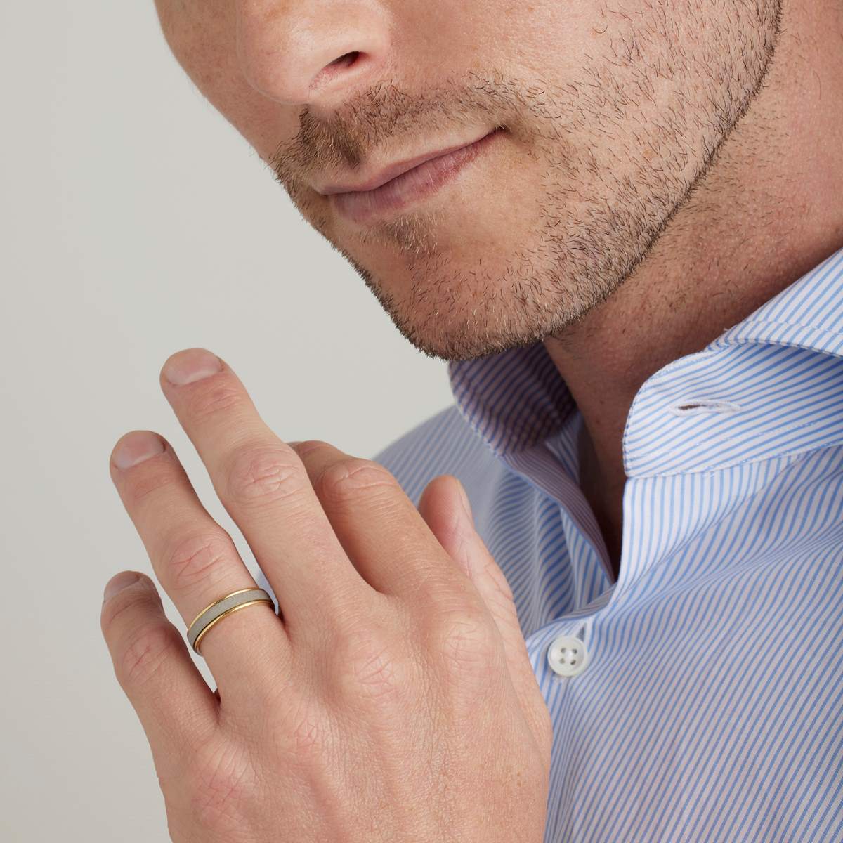 alliance de mariage, bijou de mariage contemporain, bague pour homme ou femme ruban en platine sablé sur une base en or jaune