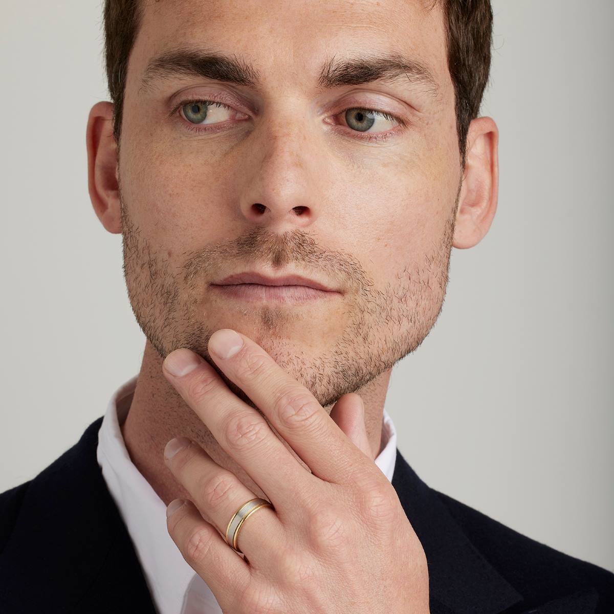 Une alliance de mariage contemporaine pour homme ou femme. Bicolore, elle est composée d'un ruban en platine et d'une base en or jaune. Cette alliance à la finition satinée et aux bords arrondis se décline en 3 largeurs : 3,8 mm, 4,5 mm et 6 mm.