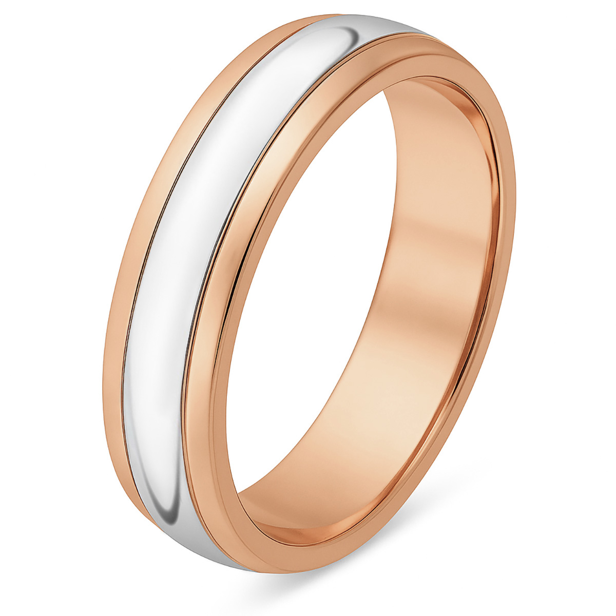 alliance de mariage, bijou de mariage bicolore, bague pour homme ou femme en platine demi bombé sur une base en or rouge