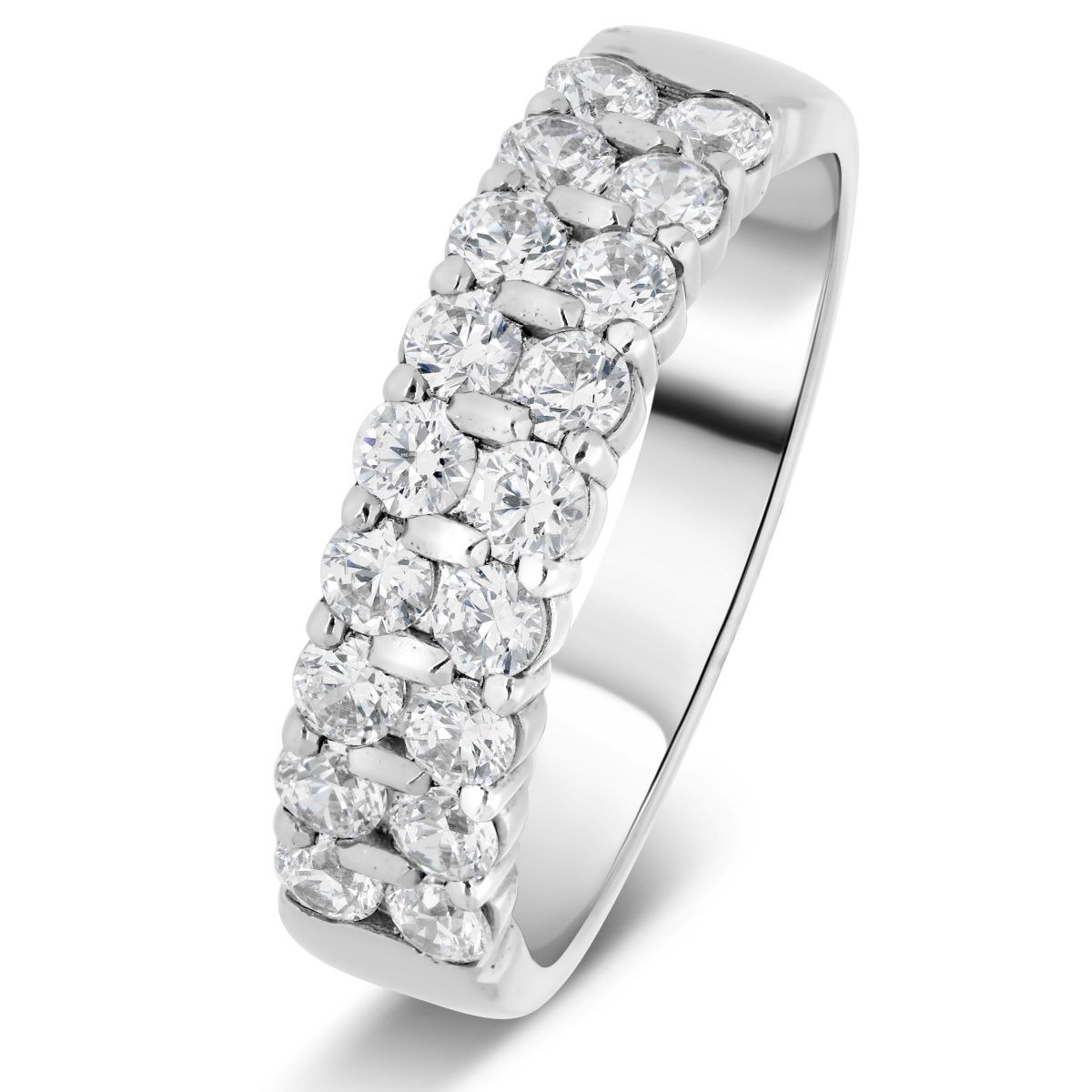alliance de mariage, bijoux de mariage joaillerie, bague pour femme en platine avec diamants taille brillant, demi tour 2 rangs serti griffes et barrettes